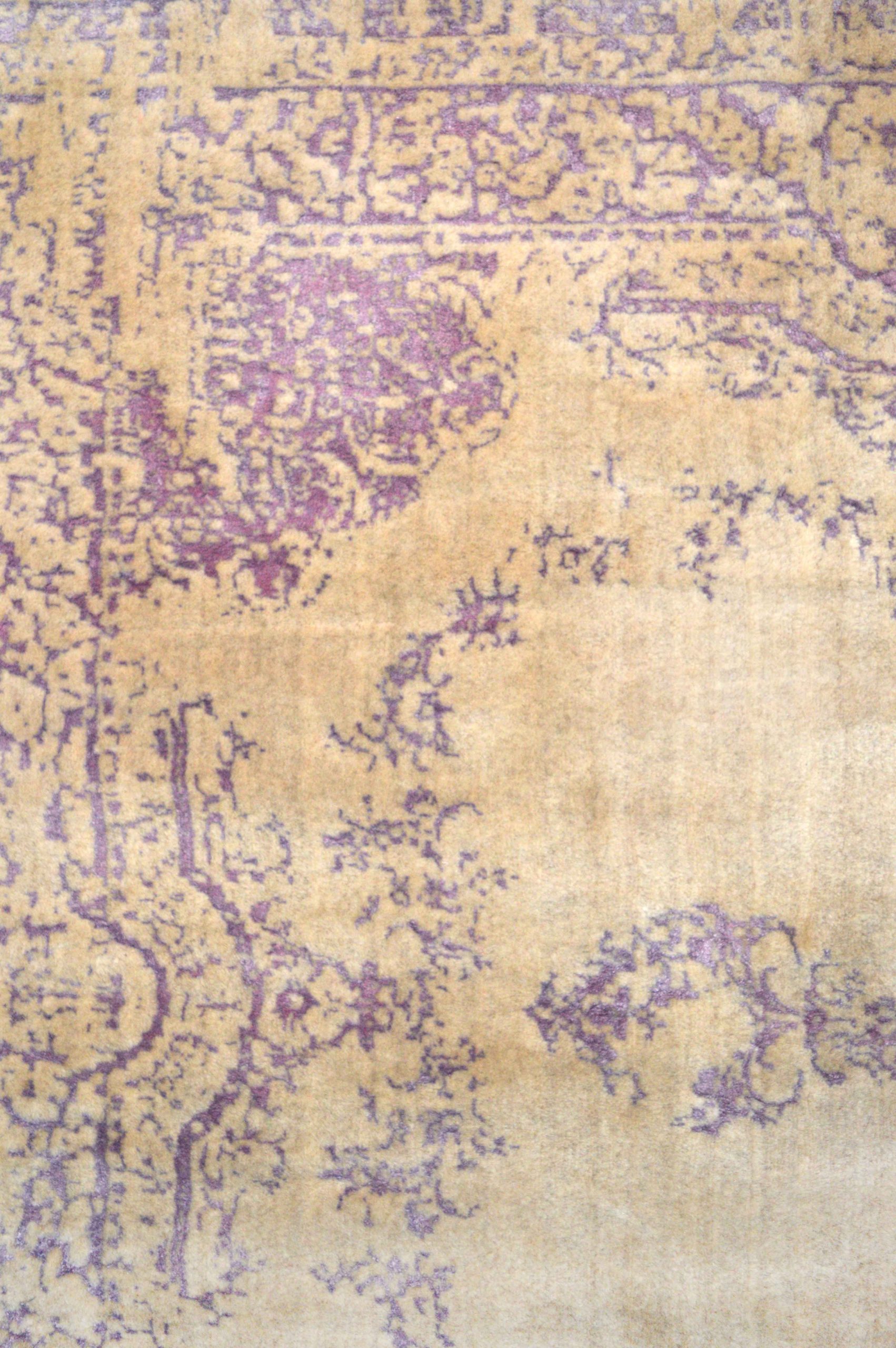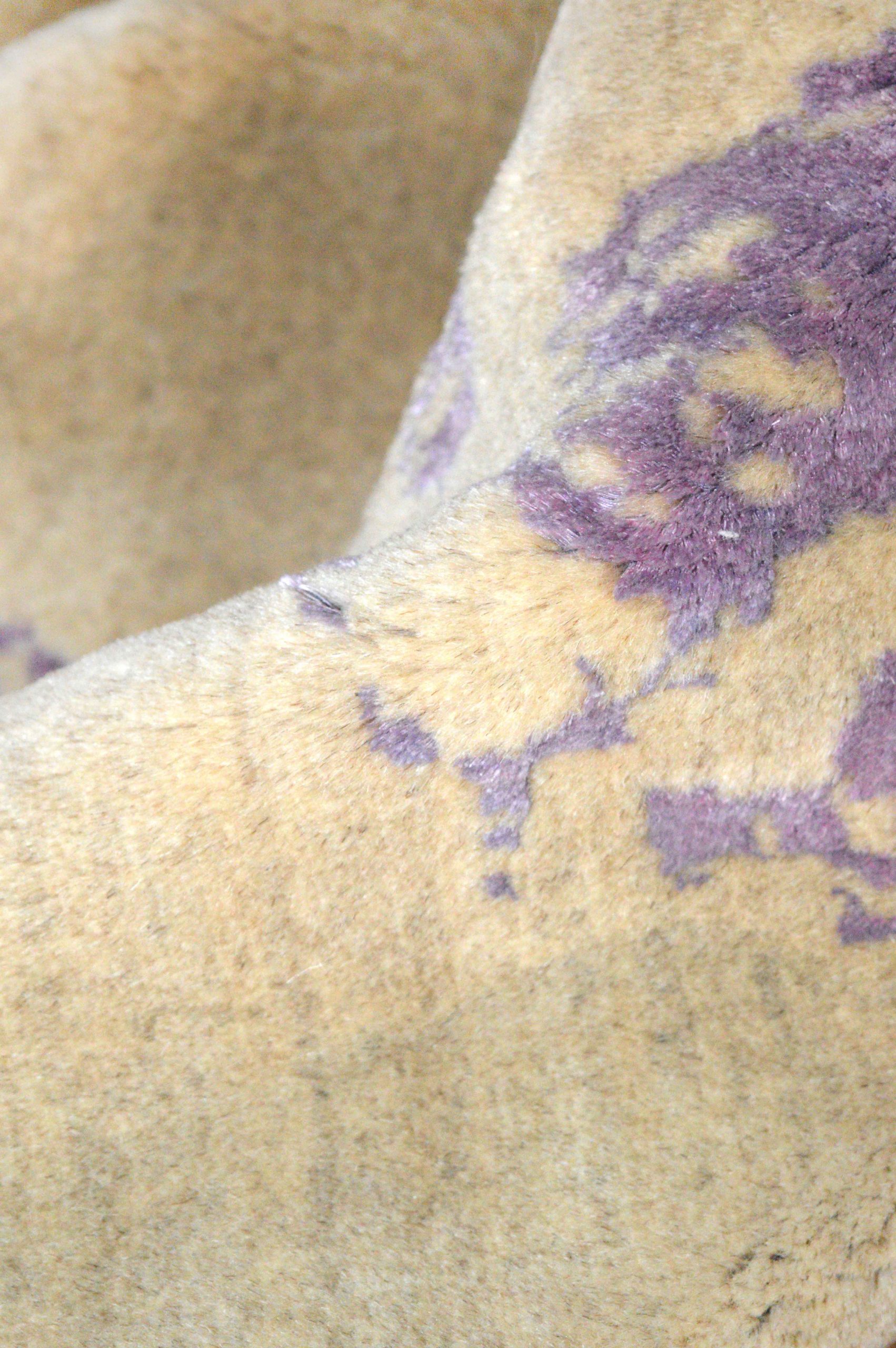 Tappeto MODERNO di design, caratterizzato da estetica contemporanea, cromie monocolore, e motivo astratto d’ispirazione tradizionale che dona lucentezza al vello in lana. Prodotto in Persia, con telaio moderno handloom, che rifinisce frange e bordi a mano.