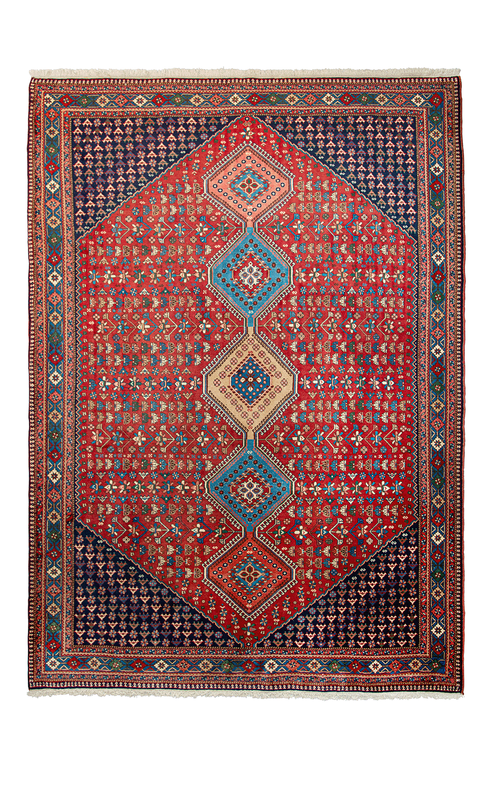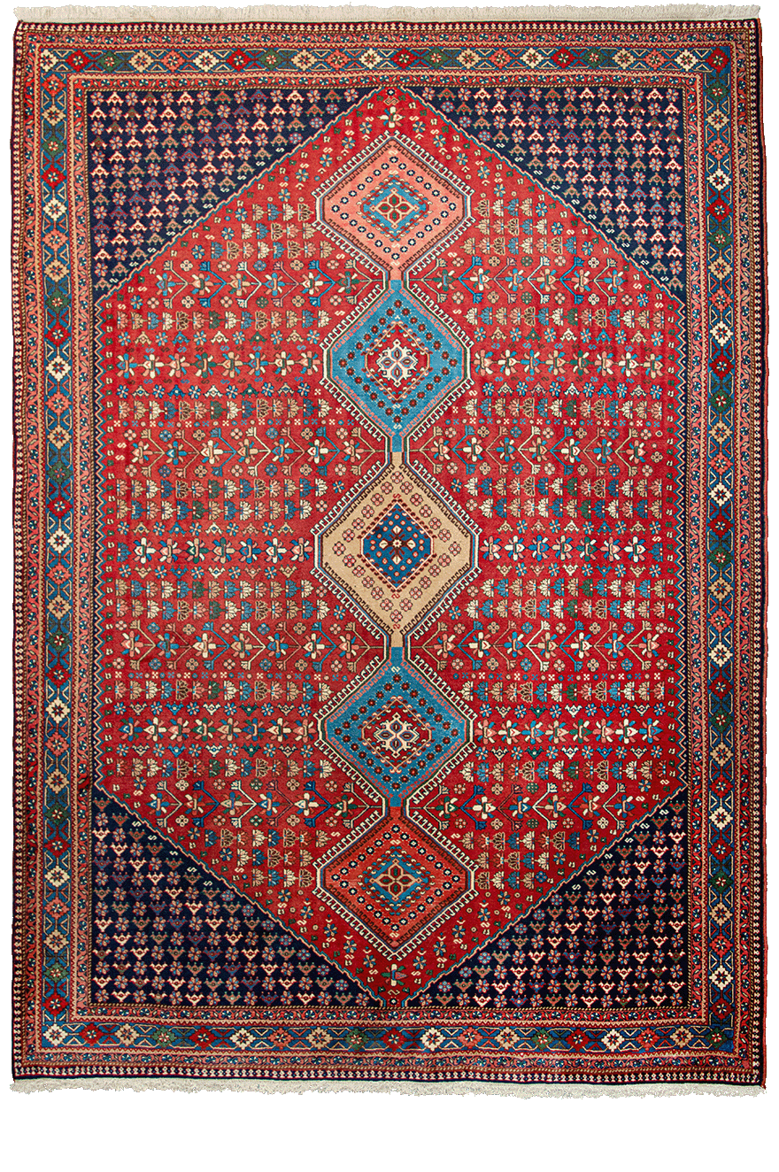 Morbido YALAMEH dall’attitudine contemporanea. Gli YALAMEH sono tappeti annodati interamente a mano, realizzati dall’ononima tribù seminomade. Presentano una morbidezza unica, dovuta ala composizone 100% lana di vello, trama e ordito. Caratterizzati da motivi geometrici romboidali, sono disponibili in numerose dimensioni e colorazioni, sia neutre che vivaci.